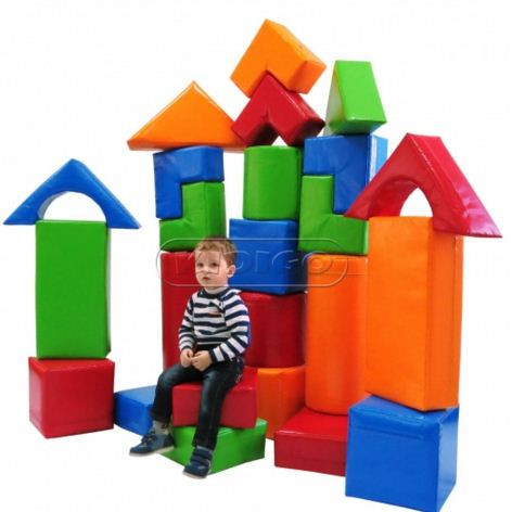 Конструктор "Строитель-2" имеет огромные размеры и состоит из 24 мягких геометрических модулей и 8 фигур. Все детали подобраны таким образом, чтобы дети могли придумывать различные игры и играть в них. Внутри детали наполнены поролоном, а внешний материал легко поддается мойке и дезинфицирующей обработке.